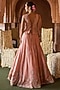 Featuring a peach lehenga in taffeta and tissue base with forest embroidery. It is paired with an embroidered corset blouse and a net dupatta. Style it with kundan polki jewellery, a potli bag and embellished block heels for a stylish ensemble, ideal for a wedding, sangeet or engagement ceremony.