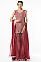Featuring a red kurta in tussar base with scallops and diamond hand embroidery. It is paired with matching organza sharara pants and a net dupatta.