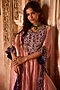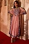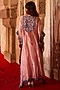 Featuring a rose pink kaftan-style cape in tissue, bemberg satin , stretch satin and cupro silk base with paisley embroidery. It is paired with a long inner and pants. Style it with kundan stud earrings, a potli bag and embellished heels for a stylish ensemble, ideal for festive occasions, family celebrations or special gatherings.