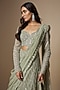 Featuring a silver grey lehenga in net base with zig-zag embroidery. It is paired with an embroidered blouse and a dupatta. Accentuate it with statement jewellery and heels for a wedding, sangeet or engagement ceremony.