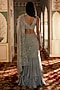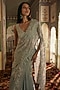 Charu & Vasundhara presents a silver draped ruffled saree in tissue and chiffon base with floral embroidery. It is paired with an embroidered blouse. Accentuate it with statement earrings. a clutch and block heels for a stylish ensemble, ideal for festive gathering, sangeet or reception ceremonies.