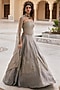 Charu & Vasundhara presents a silver lehenga in tissue base with floral and jaal embroidery. It is paired with an embellished corset and a dupatta. Accentuate it with zircon earrings. a clutch and block heels for a stylish ensemble, ideal for a wedding or engagement ceremonies.