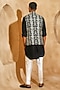 Featuring a black nehru jacket in silk blend and cotton silk base with embroidery. It is paired with a kurta and pants. Style it with classic loafers and a watch for a refined traditional look, Perfect wear for festive gatherings or sangeet ceremonies.