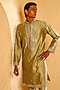 Featuring a dark beige kurta in chanderi base with mirror work. It is paired with pants. Style it with classic loafers and a watch for a refined traditional look, Perfect wear for festive gatherings or sangeet nights.