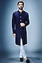 Featuring a navy blue sherwani in georgette base with cutdana work. It is paired with cotton silk pants. Perfect wear for a wedding or engagement ceremony. Perfect wear for sangeet ceremonies.