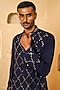 Featuring a navy blue kurta in silk blend base with mirror work. It is paired with pants. Style it with classic loafers and a watch for a refined traditional look, Perfect wear for festive gatherings or sangeet nights.