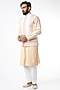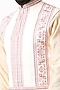 Featuring a white nehru jacket in cotton silk base with cross stitch detail. Perfect wear for a festive occasion or wedding ceremony.