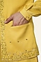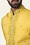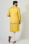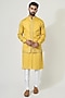 Featuring a yellow nehru jacket in cotton silk base with mirror work. It is paired with a mirror work kurta and pyjama pants. Perfect wear for festive occasions or pre-wedding ceremonies.