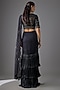 Featuring a black concept saree in tulle base with crystal embroidery and tassel detail. It is paired with a crystal embellished blouse. Accentuate it with dangler earrings, wavy curls and heels for a wedding, sangeet or engagement ceremony.