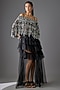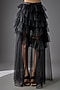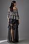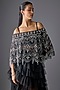 Featuring a black drop shoulder cape in tulle base with crystal hand embroidery. It is paired with a bustier and ruffled skirt. Accentuate it with stud earrings and heels for festive gatherings, sangeet ceremony or cocktail party.