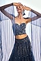 French Navy Blue Tulle Sequins Work Lehenga Set