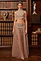 Featuring a grey semi-sheer lehenga in tulle base with 3D floral, beads, pearls, sequins and crystals embroidery. It is paired with a sleeveless crop top having a high-neckline, an inner top and an inner skirt. Accentuate it with statement earrings and embellished heels for a regal touch, perfect for cocktail parties, receptions and evening celebrations.