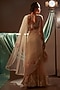 Featuring an ivory and pink ombre lehenga saree in tulle base with lace and pearl embroidery. It is paired with an embroidered off-shoulder blouse having a wide scoop neckline and an underskirt. Accentuate it with statement earrings and sleek heels for a contemporary glam look, Perfect for cocktail parties, receptions and festive soirees.