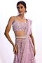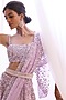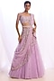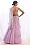 Featuring a lilac lehenga in tulle base with crystal and sequins embroidery. It is paired with a strap blouse, dupatta and a belt. Style it with statement jewellery and heels for festive occasions or wedding ceremonies.