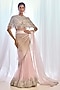 Nude & Pink Ombre Tulle Embroidered Lehenga Saree Set
