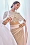 Featuring a nude and pink ombre lehenga saree in tulle base with silver crystal embroidery. It is paired with a blouse, a cape and an underskirt. Accentuate it with diamond earrings, wedges and a potli bag for an elegant look, perfect for sangeet ceremony or diwali soirees.