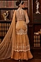 Nude Tulle Floral Aari work Tiered Draped Saree Set