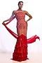 Red Tulle Crystal Motif Embroidered Strapless Gown With Dupatta