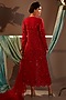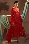 Featuring a red anarkali style jacket in tulle base with 3D floral, pearl and crystal threadwork embroidery. It is paired with churidar pants and a dupatta. Accentuate it with chandbali earrings and embellished heels for a graceful festive look, Perfect for weddings, receptions and festive celebrations.