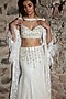 Featuring a white duster jacket in tulle base with thread and pearl embroidery and feather detailing. It is paired with a strappy crop top and a sequins skirt. Accentuate it with statement earrings and sleek heels for a contemporary glam look, Perfect for cocktail parties, sangeet nights and festive soirees.