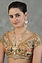 Featuring a gold finish long necklace studded with kundan polki, set in mixed metal. It is paired with a matching pair of earrings. Perfect for festive occasions or wedding ceremonies.