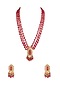 Featuring a gold finish long necklace studded with kundan polki, set in mixed metal. It is paired with a matching pair of earrings.