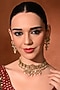 Featuring a gold finish choker necklace studded with pink kundan polki, set in mixed metal. It is paired with a matching pair of earrings. Add a touch of sparkle to your ensemble, perfect for festive occasions, evening soirees or cocktail parties.