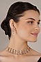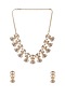 Featuring a gold finish necklace studded with purple kundan polki, set in mixed metal. It is paired with a matching pair of earrings.