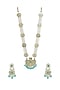 Featuring a gold finish necklace studded with kundans, feroza, set in metal alloy. It is paired with a matching pair of earrings.