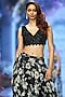Featuring a black lehenga in georgette and organza base with floral print. It is paired with a hand embroidered blouse. Accentuate it with statement jewellery and heels for a sangeet or engagement ceremony.