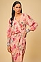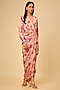 Featuring a blush pink overlap style draped dress in crepe base with print and hand embroidery. Accentuate it with statement earrings and heels for an evening look.