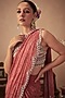 Featuring a coral saree in georgette base with print and hand embroidery. It is paired with a hand embroidered blouse. Accentuate it with statement jewellery and block heels for a wedding, sangeet or engagement ceremony.