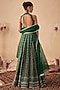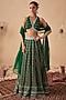 Featuring a green lehenga in georgette and crepe base with print. It is paired with a sleeveless printed blouse having hand embroidery and an organza dupatta. Accentuate it with statement jewellery and block heels for a wedding, mehendi or engagement ceremony.