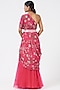 Featuring a hot pink one shoulder cowl top in crepe base with hand embroidery and print. It is paired with matching palazzo pants in organza base and a silver belt having hand embroidery.