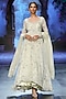 Featuring an ivory anarkali in georgette base with cancan, print and hand embroidery. It is paired with an embroidered organza dupatta. Accentuate it with statement earrings and heels for any festive occasion or sangeet ceremony.