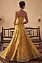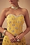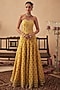 Featuring a yellow lehenga for girls in crepe base with print. It is paired with a printed and hand-embroidered corset. Style it with sandals and hair accessories for festive occasions or haldi ceremony.
