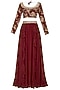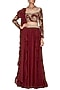 Featuring a maroon lehenga set in crepe and georgette base with sequins and pearl embroidery. It has printed blouse.