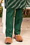 Featuring a bottle green bundi jacket in crepe and glaze cotton base with print. It is paired with a striped kurta and pants. Perfect wear for a mehendi or engagement ceremony.