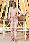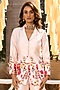 Featuring an off-white jacket in modal satin base with floral print. It is paired with matching pants.