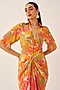Featuring an orange shirt dress in crepe base with print and an attached belt. Accentuate it with dangler earrings and heels for a casual or vacation wear.