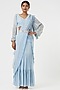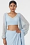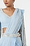 Featuring a powder blue pre-draped saree in georgette base. It is paired with a matching blouse having embroidered balloon sleeves and a belt.
