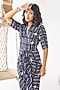 Featuring a navy blue draped shirt dress in crepe base with print.
