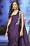 Featuring a purple draped saree in satin base with hand embroidery. It is paired with satin pants. Accentuate it with statement jewellery and block heels for a sangeet ceremony.