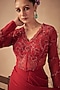 Featuring a red pre-draped saree in georgette base with hand embroidery. It is paired with a hand embroidered blouse. Accentuate it with statement jewellery and block heels for a wedding, sangeet or engagement ceremony.