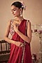 Featuring a red saree in satin base with mirror embroidery. It is paired with a mirror embroidered blouse. Accentuate it with statement jewellery and block heels for a wedding, sangeet or engagement ceremony.
