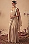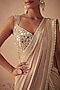 Featuring a rose gold lehenga saree in tissue base. It is paired with a mirror embroidered blouse. Accentuate it with statement jewellery and block heels for a wedding, sangeet or engagement ceremony.