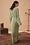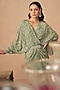 Featuring a sage green draped dress in crepe base with kaftan sleeves, print and embroidery. Accentuate it with statement jewellery and block heels for cocktail parties or evening soirees.