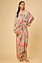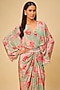 Featuring a sage green draped dress in crepe base with embroidery, print and kaftan style sleeves. Accentuate it with statement earrings and heels for an evening look.