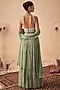 Featuring a sage green lehenga in georgette and organza base with print. It is paired with a halter neck embroidered blouse and a georgette dupatta. Accentuate it with statement jewellery and block heels for a wedding, mehendi or engagement ceremony.