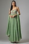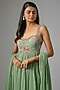 Featuring a sage green anarkali in lurex georgette base with print and straps hand embroidery. It is paired with a dupatta. Accentuate it with pants, statement earrings and heels for festive occasions or wedding ceremonies.